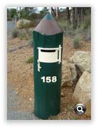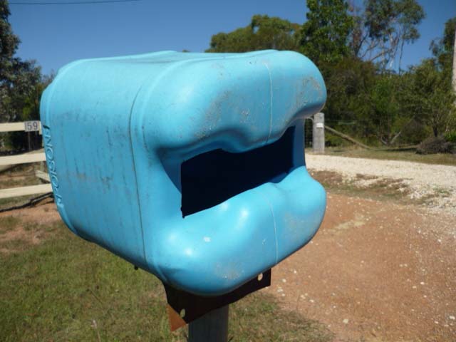 In a belated recognition of 200 years of mail delivery (including more than 30 years to our immediate area) I present to the reader a small selection of the wizardry gracing the roadsides in our region. I leave it to you to form your opinion of the artwork and to ponder on the likely personality or multiples thereof of each artist. Given the eclectic array of the mail receptacles dotting our locality I can only imagine the challenge that besets the poor old posties as they go about their business, although, it must make for variety.